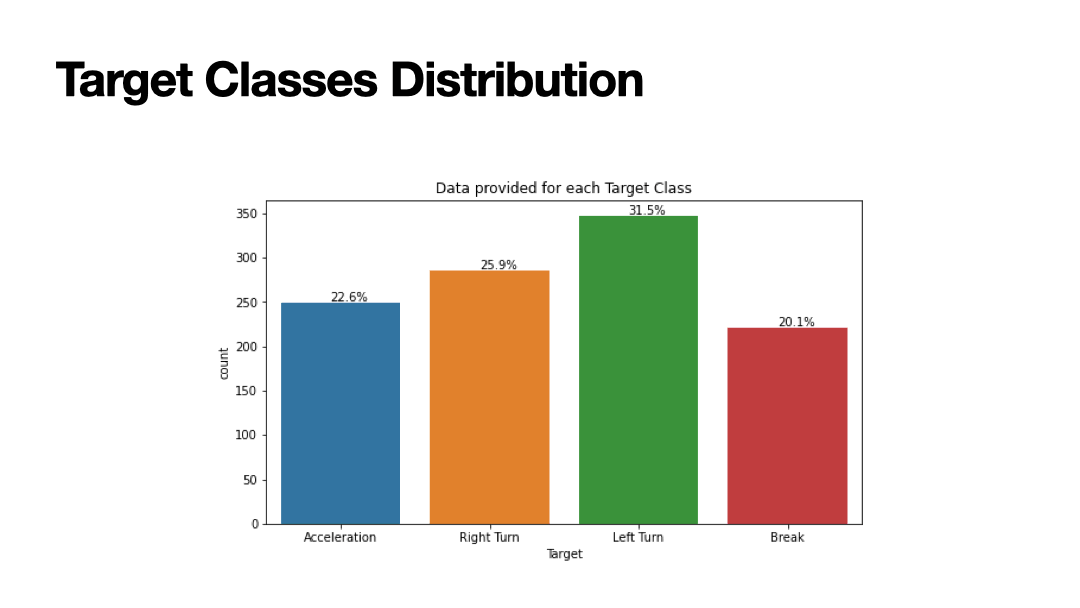3) sudden left turn, 4) sudden break. The dependent variables are based on 60 independent variables that relate to the accelerometer measured in
