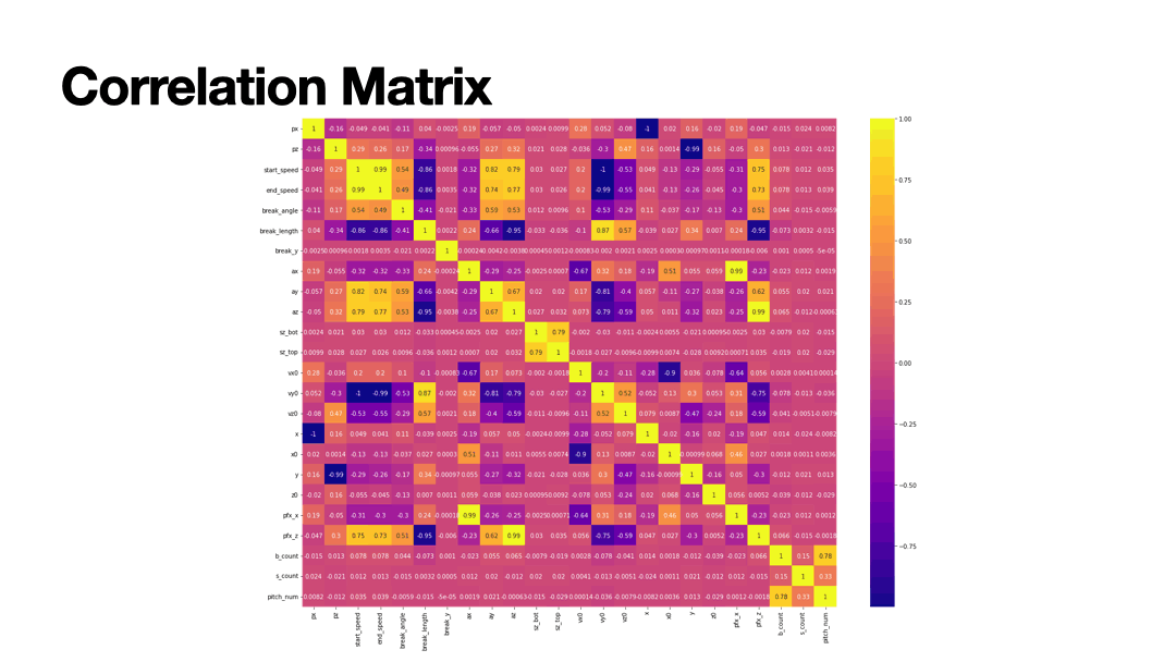 Baseball is often thought as a game of many statistics. Pitching is one of the best ways to analyze the game. In this machine learning project I used several machine learning techniques to classify the type of pitch based on the baseball's X,Y,Z coordinates from the time it leaves the pitcher's hand to when the ball crosses homeplate. The MLB dataset contains 40 features with 12 classifications of pitch types.